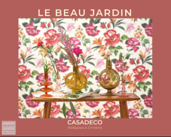 קולקציית טפטים Le Beau Jardin מבית Casadeco מציגה טפטים וטפטי תמונה בהשראת גנים פורחים, פריחות גדולות ואיורים בוטניים, עם צבעוניות רכה ורעננה.